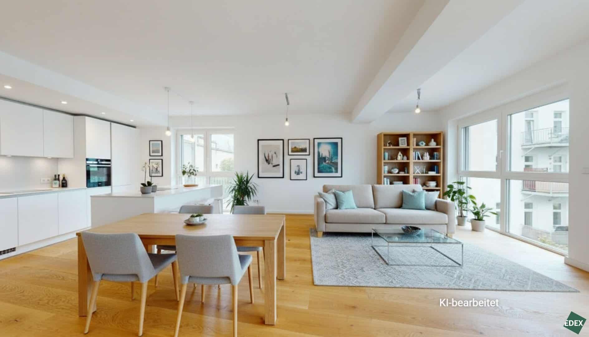 Die dargestellte Möblierung, einschließlich Küche und Begrünung, versteht sich ausschließlich als Gestaltungsvorschlag und ist nicht Bestandteil des Lieferumfangs oder des Vertrages. Die angegebenen Raum- und Wohnungsgrößen sowie Raumhöhen sind Richtwerte und können sich geringfügig ändern. Bauübliche Toleranzen bleiben vorbehalten. Sämtliche Maßangaben sind Circa-Werte und können abweichen. Für die Anfertigung von Einbaumöbeln sind die am Objekt genommenen Naturmaße verbindlich. Änderungen während der Bauausführung – insbesondere aufgrund behördlicher Auflagen sowie haustechnischer oder konstruktiver Erfordernisse – bleiben vorbehalten.