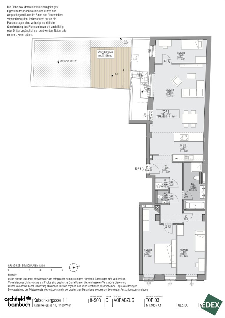 - TOP 3 ca. 106,13 m² großer 4-Zimmer-Altbau mit ca. 14,15 m² Terrasse und 25,06 m² Grünfläche: EUR 943.000,-