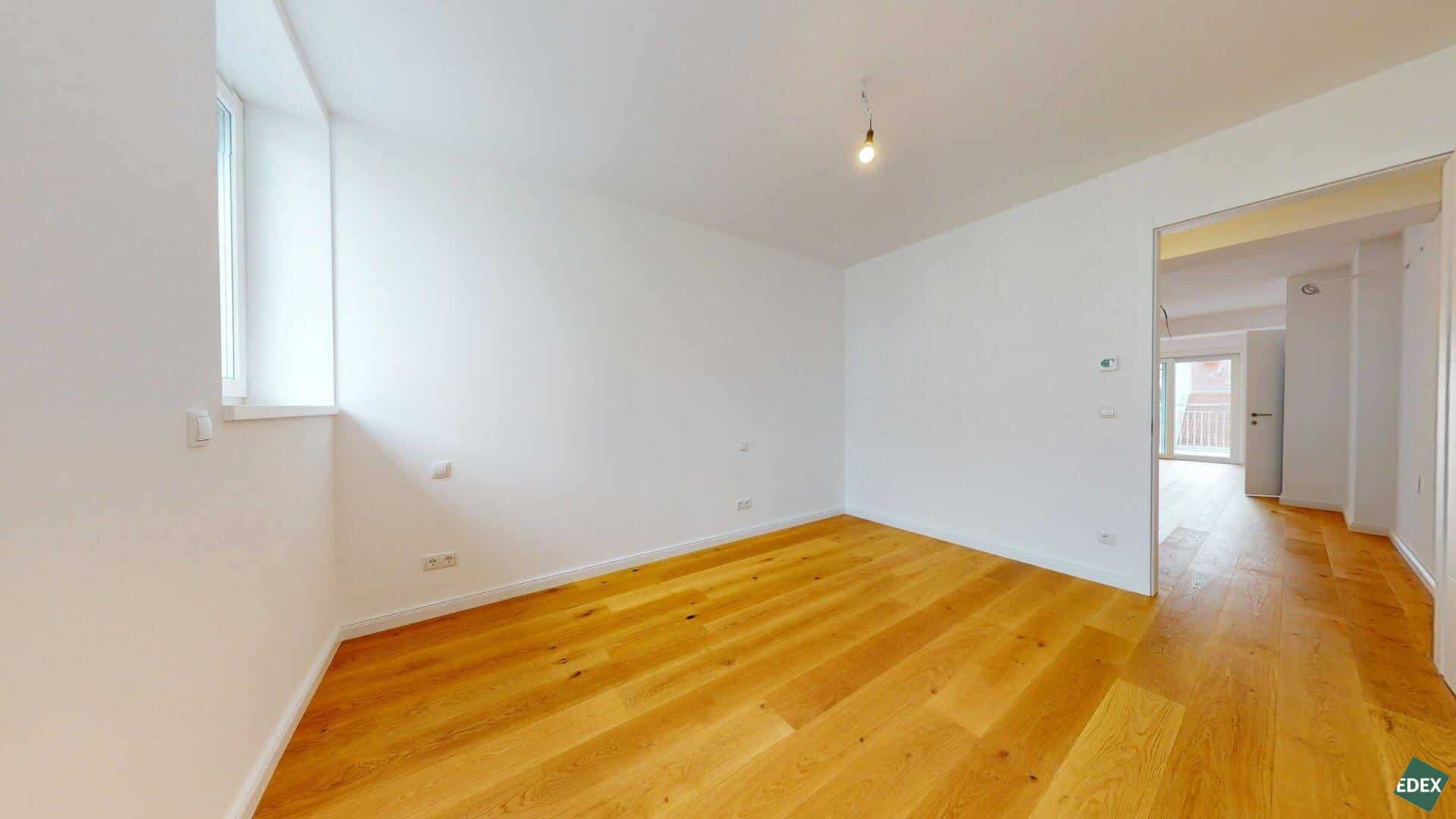 Alle Wohnräume sind mit hochwertigem Eichenparkett ausgestattet, während das Badezimmer mit zeitlos eleganten Fliesen versehen ist. In der gesamten Wohnung sorgt eine Fußbodenheizung für angenehmen Komfort. Zusätzlichen Stauraum bietet ein Kellerabteil. Im Haus stehen zudem ein Kinderwagen- sowie ein Fahrradabstellraum zur Verfügung. Weiters gibt es eine Tiefgarage mit 7 KFZ-Stellplätzen.