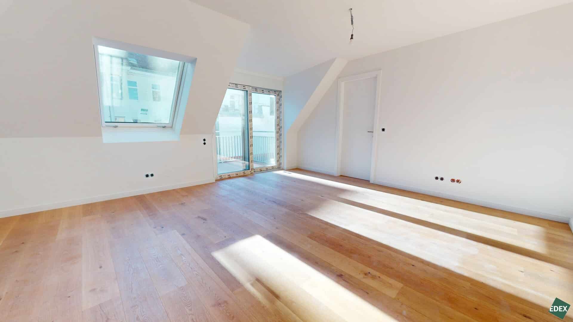 Diese wunderschöne, ca. 103 m² große 4-Zimmer-Wohnung befindet sich im neu ausgebauten 3. Stockwerk (Liftstock) des Gebäudes. Die Wohnung besticht durch einen zentralen Vorraum, eine große Wohnküche mit Anschlüssen für eine offene Küche, drei Schlafzimmer, einen Abstellraum mit Waschmaschinenanschluss, ein Badezimmer mit Dusche, Doppelwaschbecken und ein WC, sowie ein separates WC. Das Highlight ist der rund 10 m² große Südbalkon, der direkt von der Wohnküche aus zugänglich ist und ausreichend Platz für die persönliche Grünoase bietet.