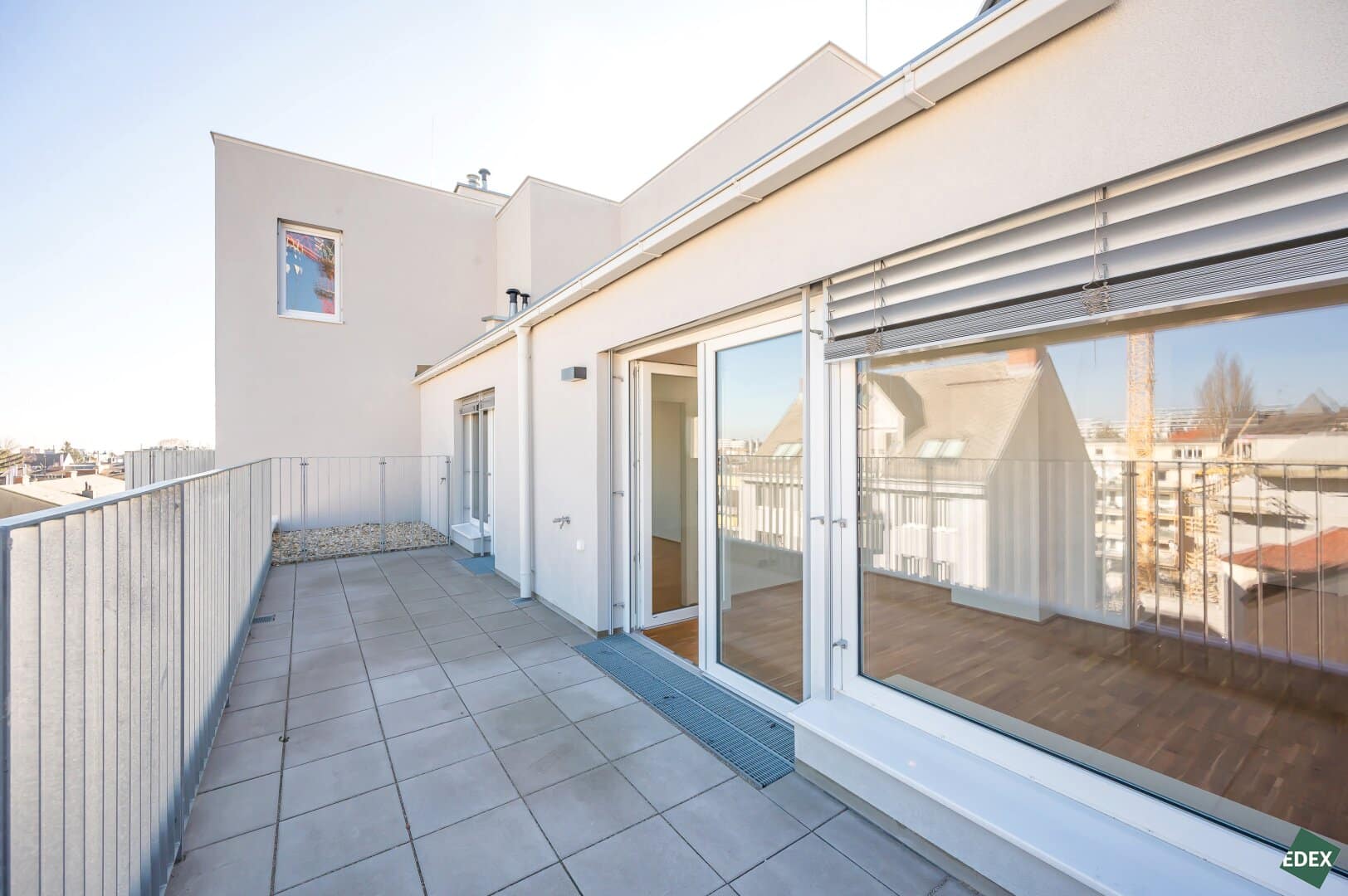 Diese 2 Zimmer-Wohnung im 5. Stock/1. DG mit ca. 51,88 m² verfügt über eine separate Küche mit Anschlüssen, ein Wohnzimmer, ein Schlafzimmer, ein Bad mit Badewanne und Waschmaschinenanschluss, ein separates WC mit Handwaschbecken sowie einen Vorraum. Highlight der Wohnung ist die ca. 18,05 m² große Terrasse, die vom Wohnzimmer und vom Schlafzimmer begehbar ist.