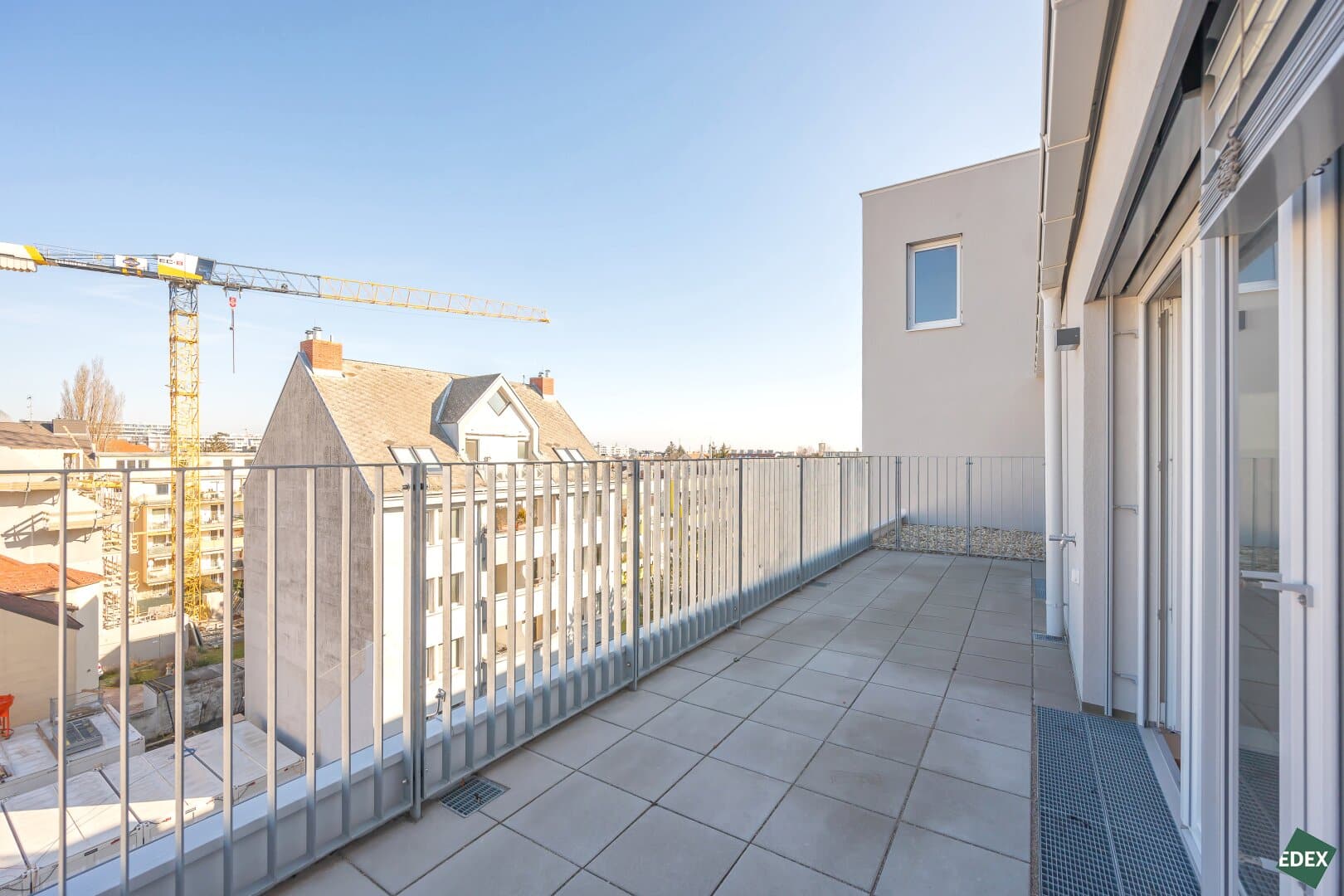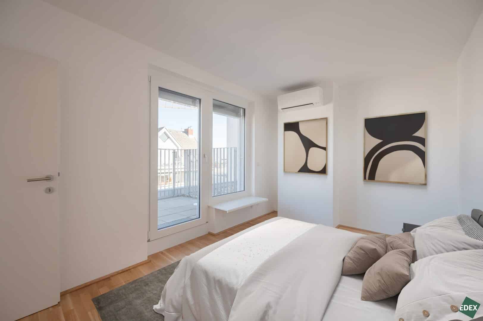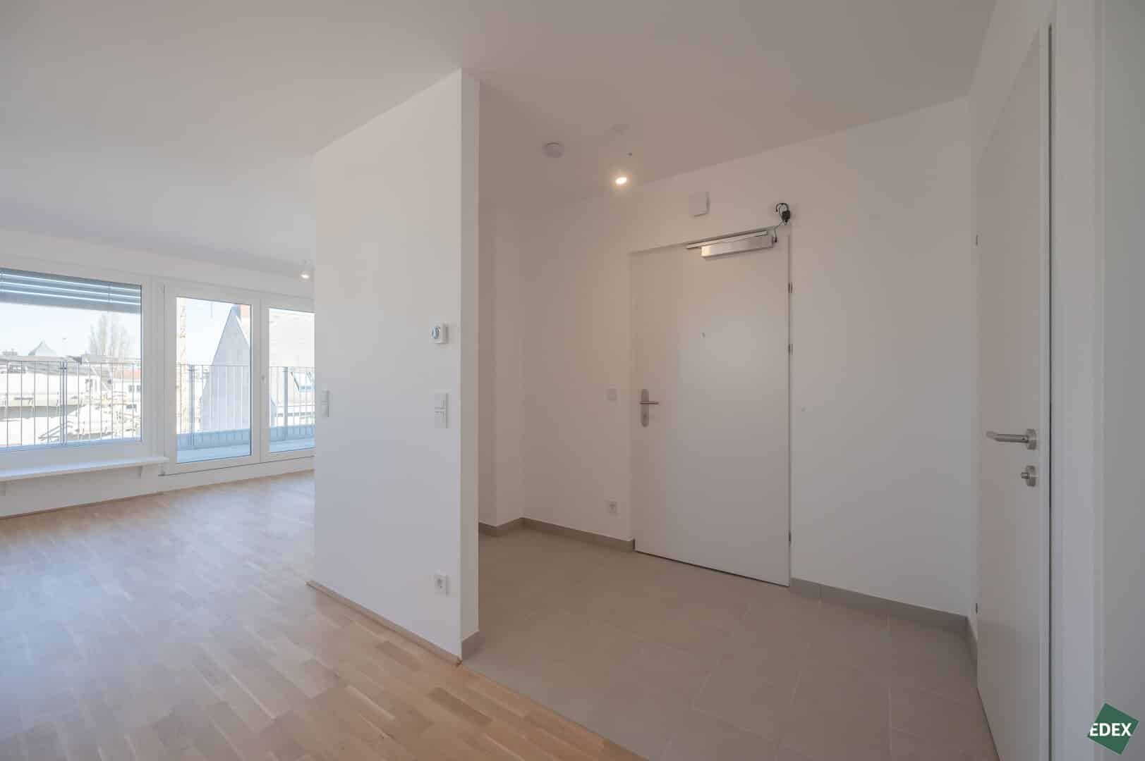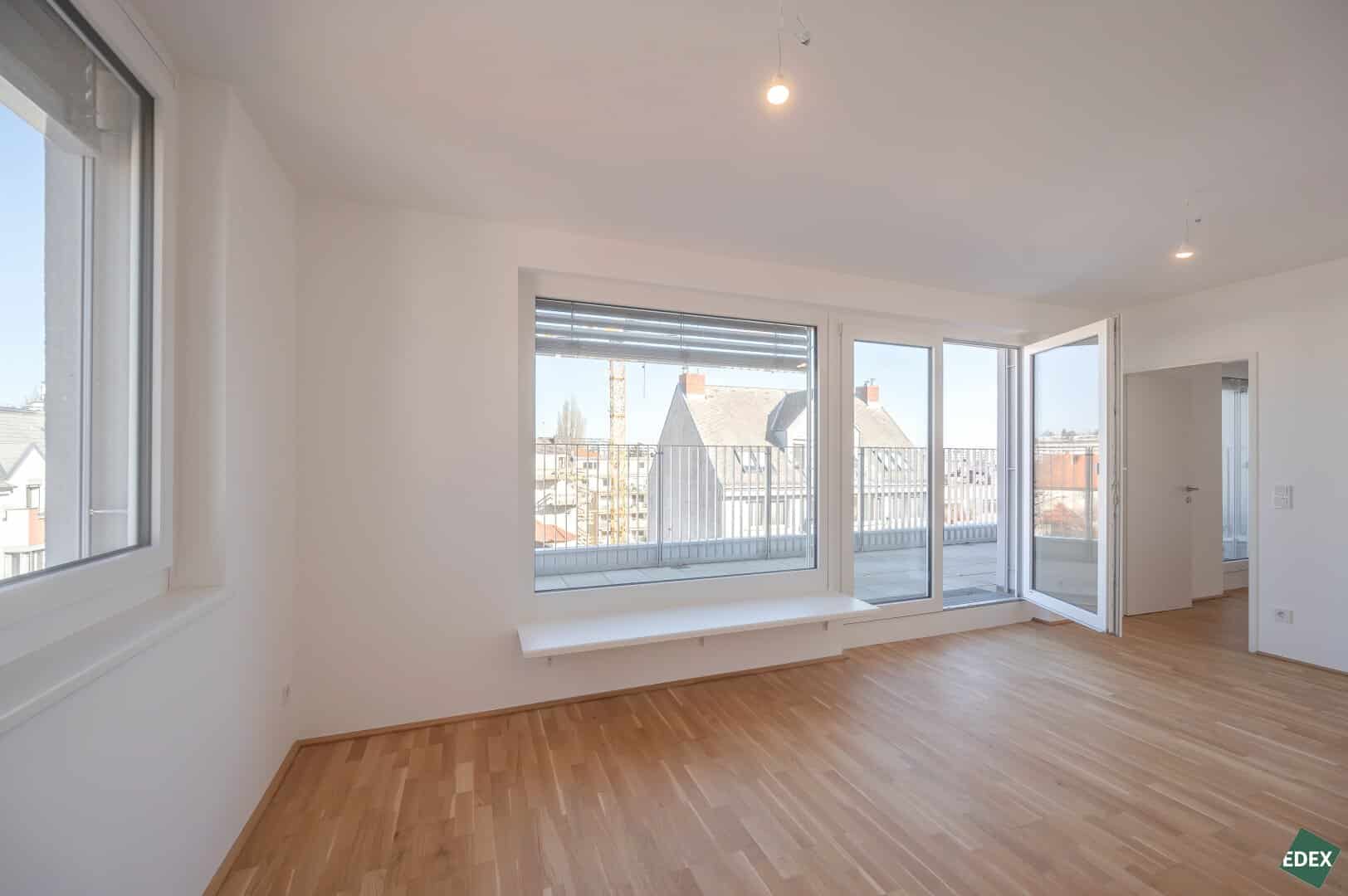 Alle 44 Eigentumswohnungen verfügen über äußerst effiziente Grundrisse sowie teilweise über Balkon, Terrasse oder Eigengarten, die Nutzflächen der Wohnungen liegen zwischen 32 m² und 91 m². Moderne, elegante Bäder und hochwertige Parkettböden schaffen eine zeitgemäße Wohnatmosphäre. Eine Wärmepumpe sowie eine Photovoltaik-Anlage mit einer Leistung von mindestens ca. 3,46 kWp sorgen für eine umweltschonende Energieversorgung. Durch Einsatz eines Smart-Home-Systems, können Haustüren über das Smartphone aufgesperrt oder Informationen zum Gebäude von unterwegs abgerufen werden. In der Garage stehen 21 Garagenplätze zur Verfügung, E-Ladestationen können nachgerüstet werden.