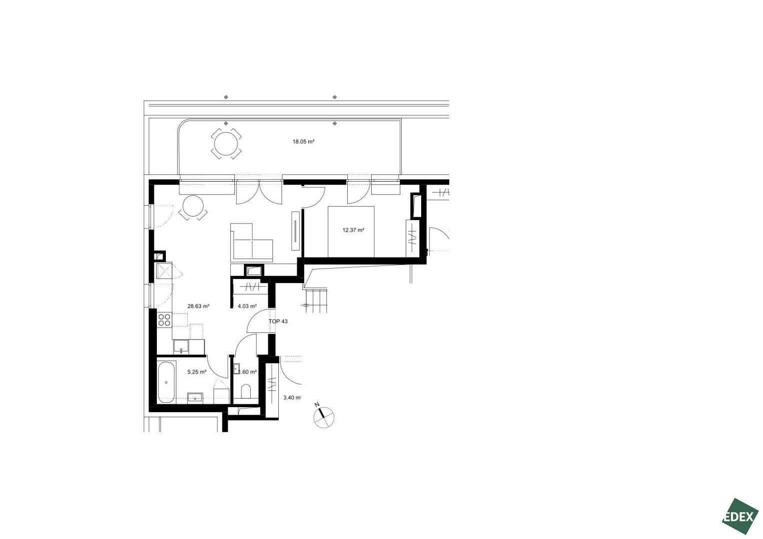 - TOP 43: ca. 51,88 m² 2-Zimmer-Wohnung mit 18,05 m² Terrasse