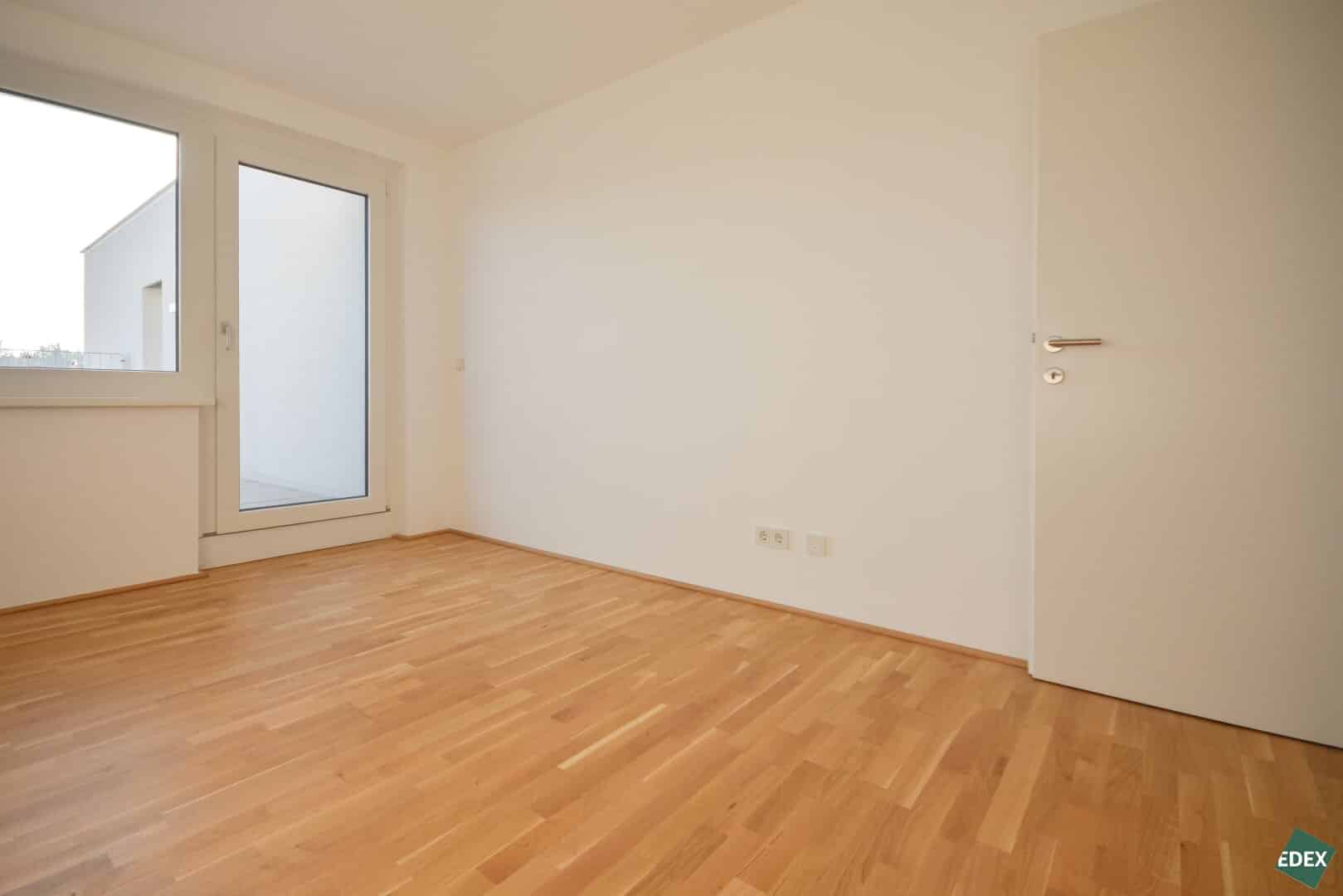 Alle 44 Eigentumswohnungen verfügen über äußerst effiziente Grundrisse sowie teilweise über Balkon, Terrasse oder Eigengarten, die Nutzflächen der Wohnungen liegen zwischen 32 m² und 91 m². Moderne, elegante Bäder und hochwertige Parkettböden schaffen eine zeitgemäße Wohnatmosphäre. Eine Wärmepumpe sowie eine Photovoltaik-Anlage mit einer Leistung von mindestens ca. 3,46 kWp sorgen für eine umweltschonende Energieversorgung. Durch Einsatz eines Smart-Home-Systems, können Haustüren über das Smartphone aufgesperrt oder Informationen zum Gebäude von unterwegs abgerufen werden. In der Garage stehen 21 Garagenplätze zur Verfügung, E-Ladestationen können nachgerüstet werden.