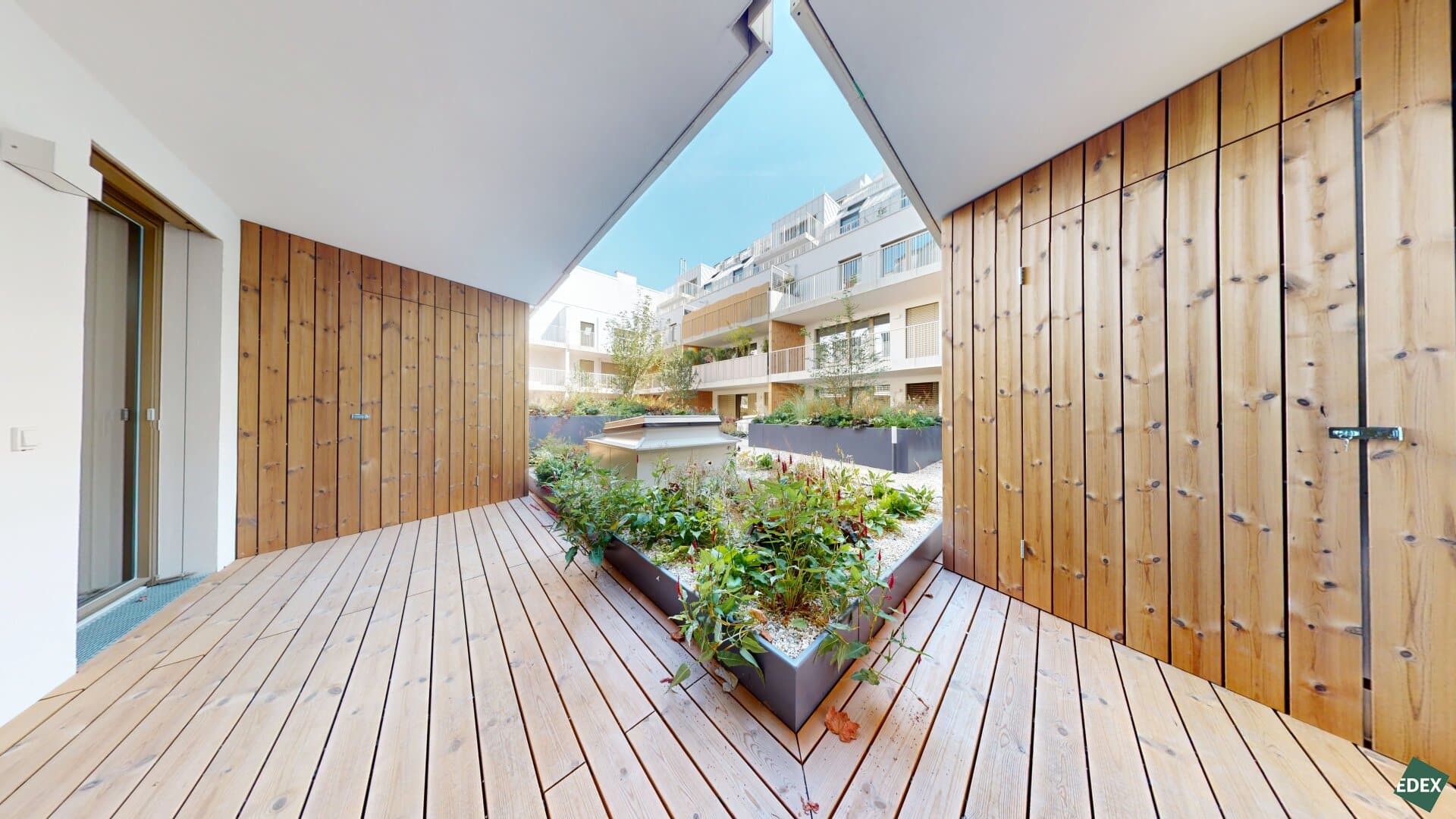 Auf den großzügigen Freiflächen schaffen bereits integrierte Pflanzentröge und Wasseranschlüsse Raum für Ihr eigenes kleines Grün im Innenhof – ideal zum Abschalten nach einem langen Tag.