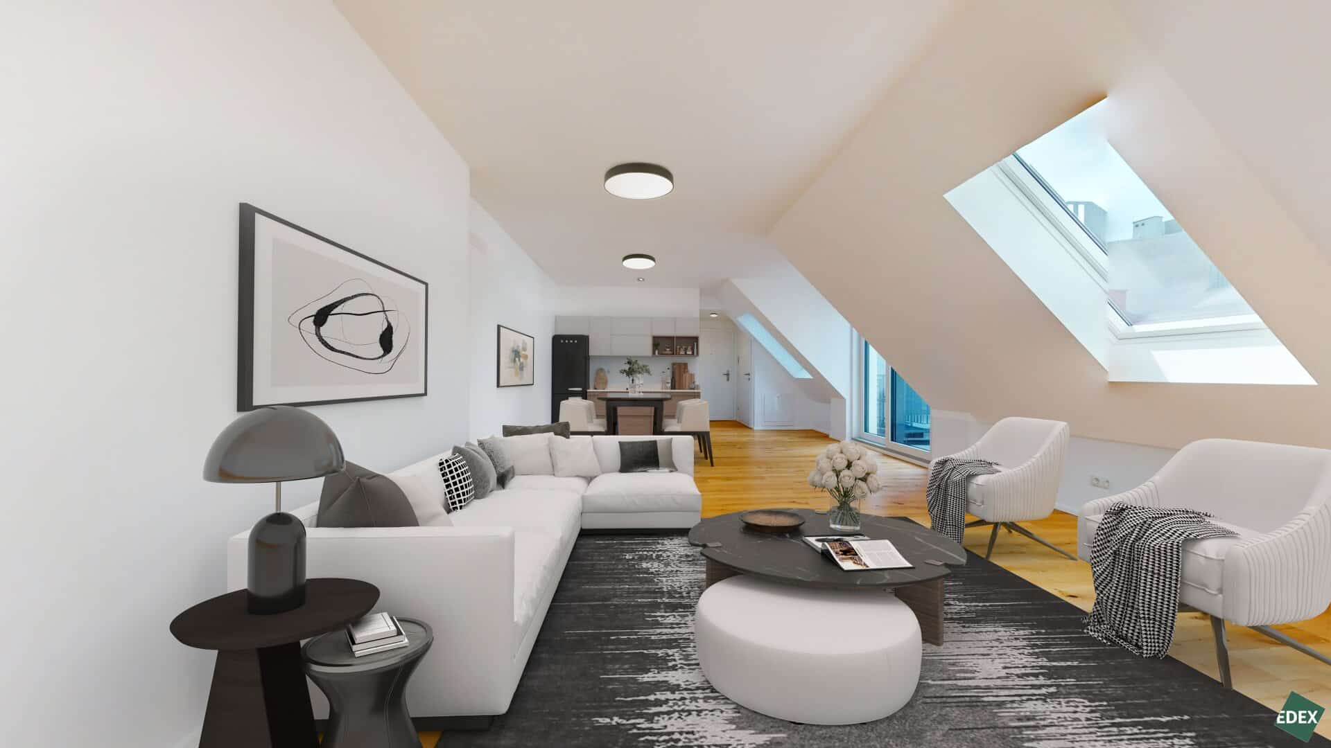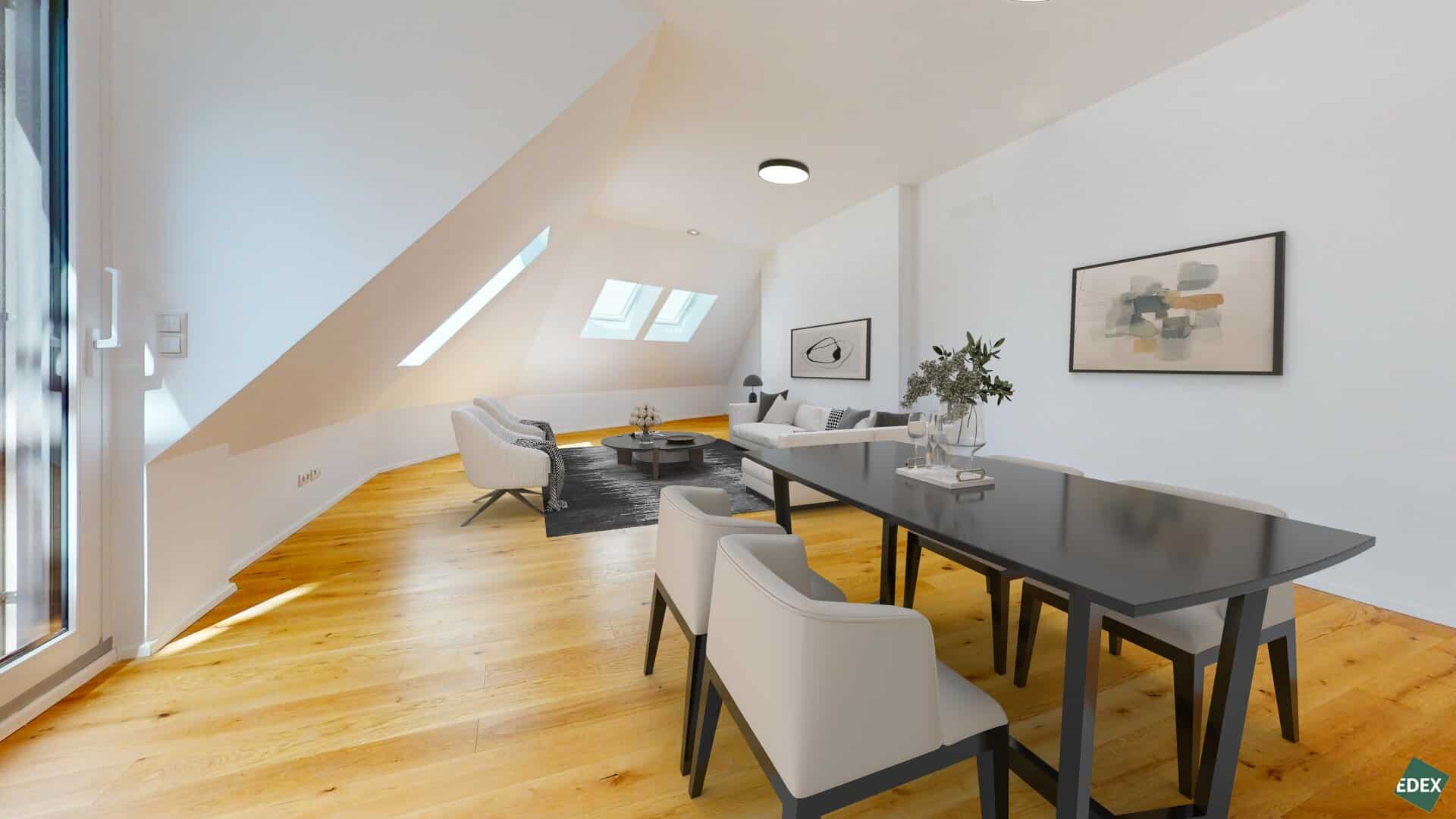 Die in diesem Exposé enthaltenen Bilder dienen der Veranschaulichung und können teilweise computergenerierte Visualisierungen (Renderings) beinhalten. Diese Darstellungen sollen einen Eindruck von der möglichen Gestaltung der Immobilie vermitteln, stellen jedoch keine verbindliche Beschaffenheitsangabe dar. Die abgebildeten Möbel und Einrichtungsgegenstände dienen ausschließlich der Illustration und sind nicht Bestandteil des Kauf- oder Mietgegenstandes.