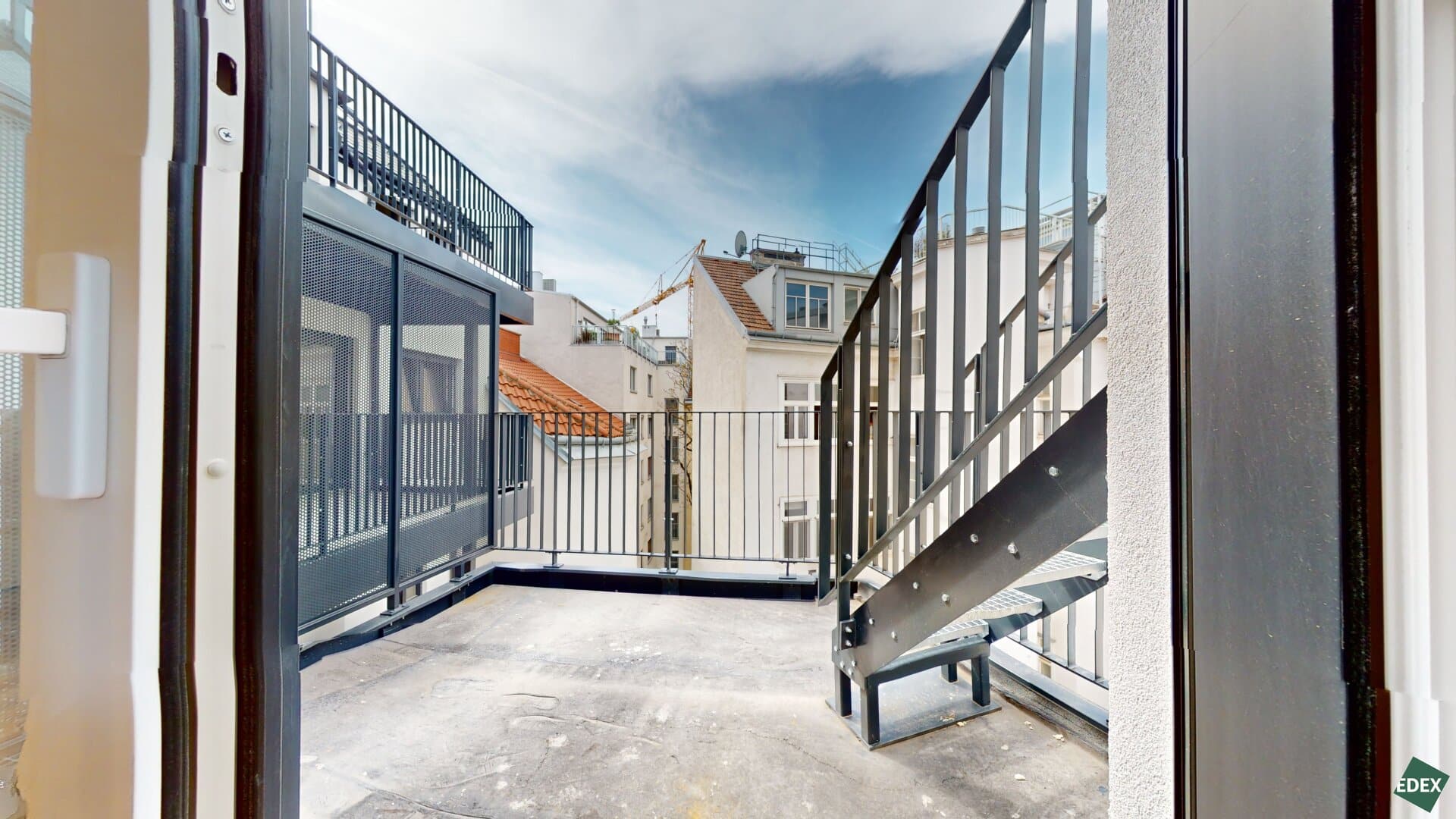 Die Freifläche teilt sich mittels Treppen auf zwei Etagen auf und kann vom Wohnbereich erreicht werden. Alle Wohnräume sind mit hochwertigem Parkett und das Badezimmer mit modernen und eleganten Fliesen ausgestattet. In der Wohnung wurde eine Fußbodenheizung verlegt.