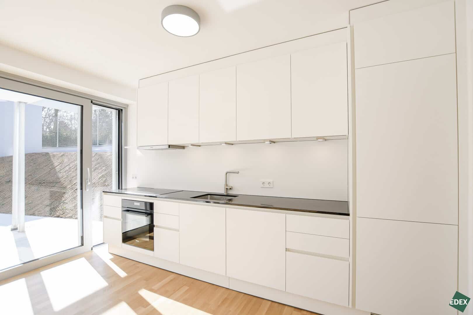 Die Wohnungen mit einer Größe von ca. 48 m² bis 137 m² verfügen über ein bis drei Zimmer und bieten großzügige Grundrisse mit durchdachter Raumaufteilung. Beinahe jede Einheit verfügt über eine Freifläche in Form von Balkon, Terrasse oder Garten – für mehr Licht, Luft und Lebensqualität. Die intelligente Raumnutzung vermittelt selbst bei kleineren Flächen Großzügigkeit. Der zentrale Wohnbereich mit offener Küche (ausgestattet mit modernen SIEMENS-Geräten) schafft einen harmonischen Mittelpunkt für entspanntes Wohnen.