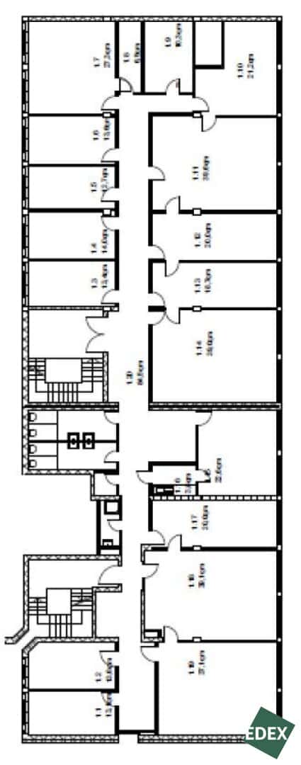 Die Büroflächen liegen teilweise übereinander, verfügen über mehrere Stiegenhäuser und sind direkt miteinander verbunden. Die Raumhöhe in den Büroräumen beträgt drei Meter. In den Gängen ist die Raumhöhe durch eine abgehängte Decke etwas niedriger.
