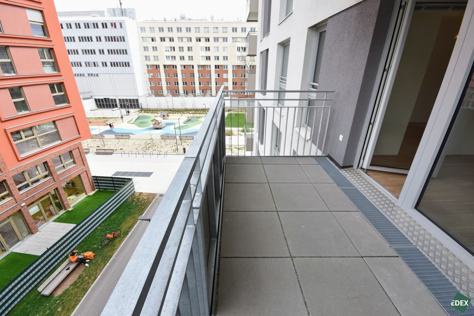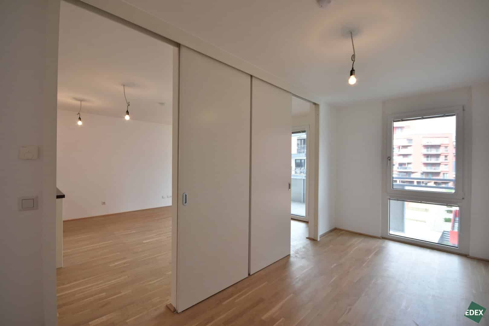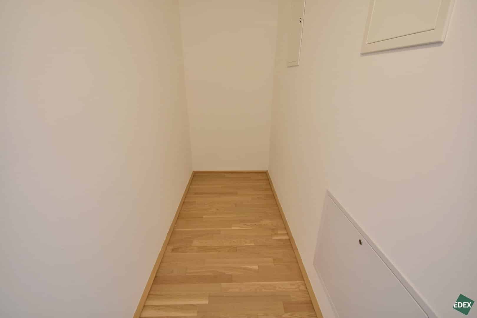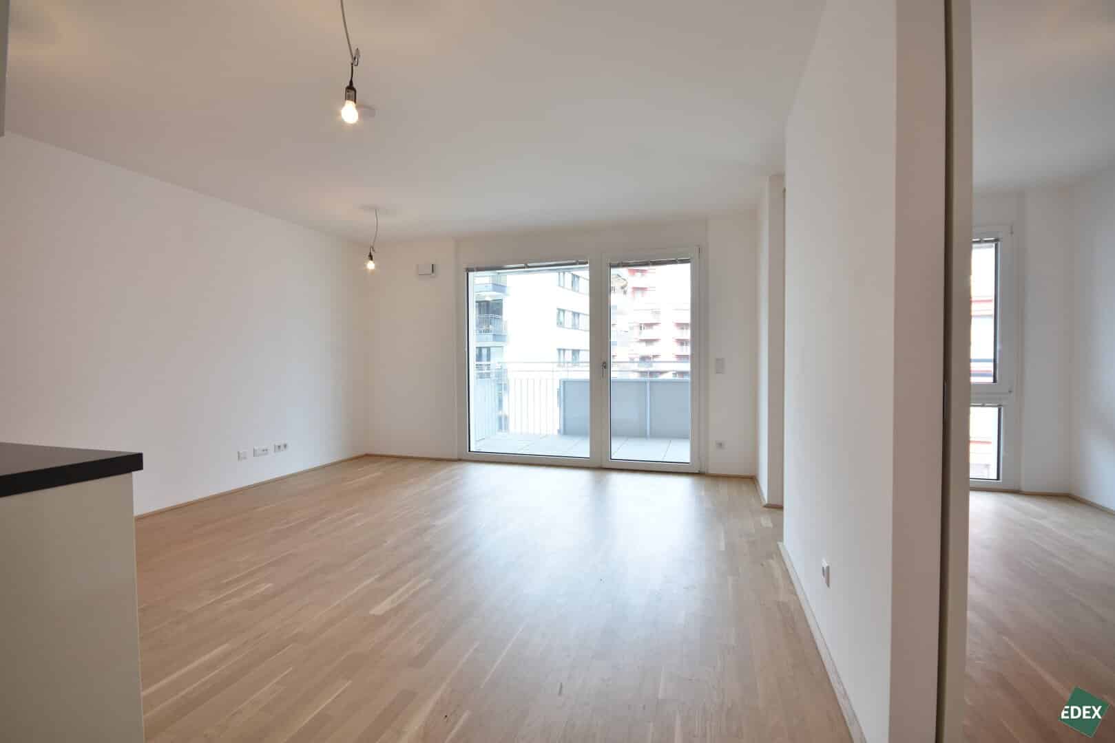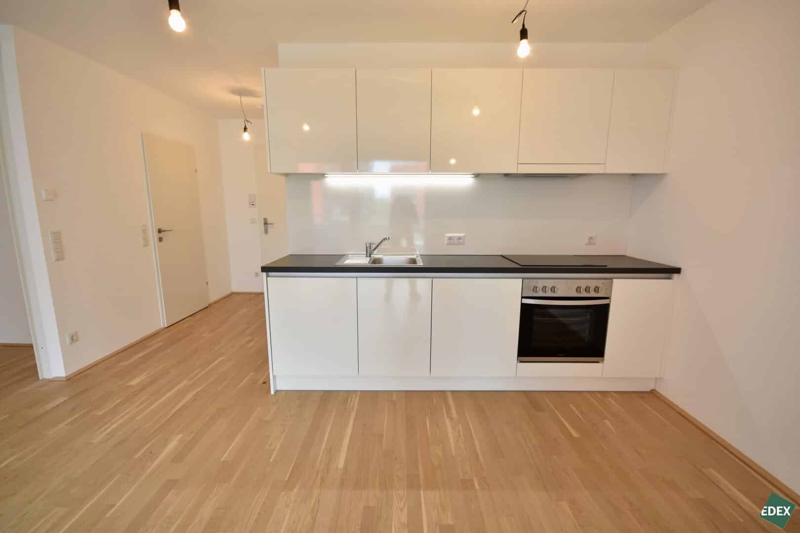 Zur Vermietung gelangt eine 2-Zimmer Wohnung in idyllischer und urbaner Atmosphäre. Die lichtdurchflutete Wohnung verfügt über einen Vorraum, einen Abstellraum, eine separate Toilette, ein modernes Badezimmer mit Dusche und Waschmaschinenanschluss, einen großzügigen Wohnbereich mit einer modernen, offenen Küche mit Zugang zu einem schönen Balkon sowie über ein Schlafzimmer. Die 3-fach-verglasten Fenster sind mit einem hochwertigen Sonnenschutz ausgestattet. Die Wohnräume sind mit schönem Parkettboden ausgestattet und die Nassräume mit Fliesen verlegt. Weiters verfügt die Wohnung über ein Kellerabteil. Im Haus befinden sich Kinderwagen- und Fahrradabstellräume.