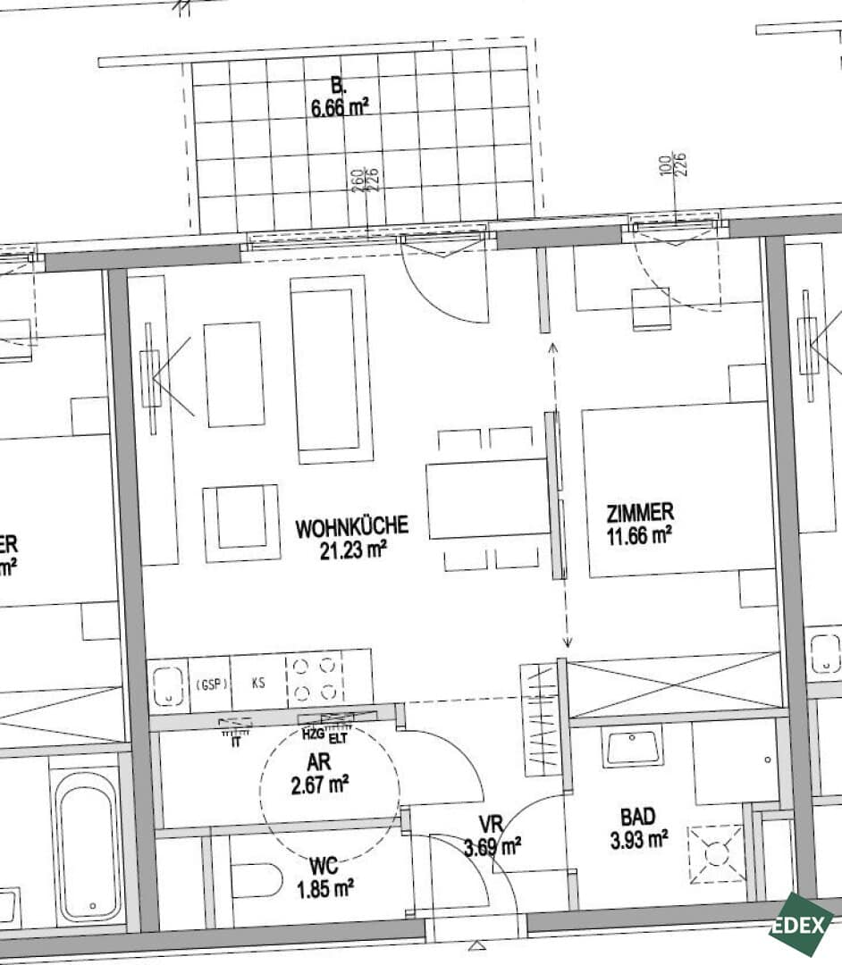 Bei Bedarf kann ein Garagenplatz in der hauseigenen Tiefgarage um monatlich EUR 160,00,- angemietet werden.