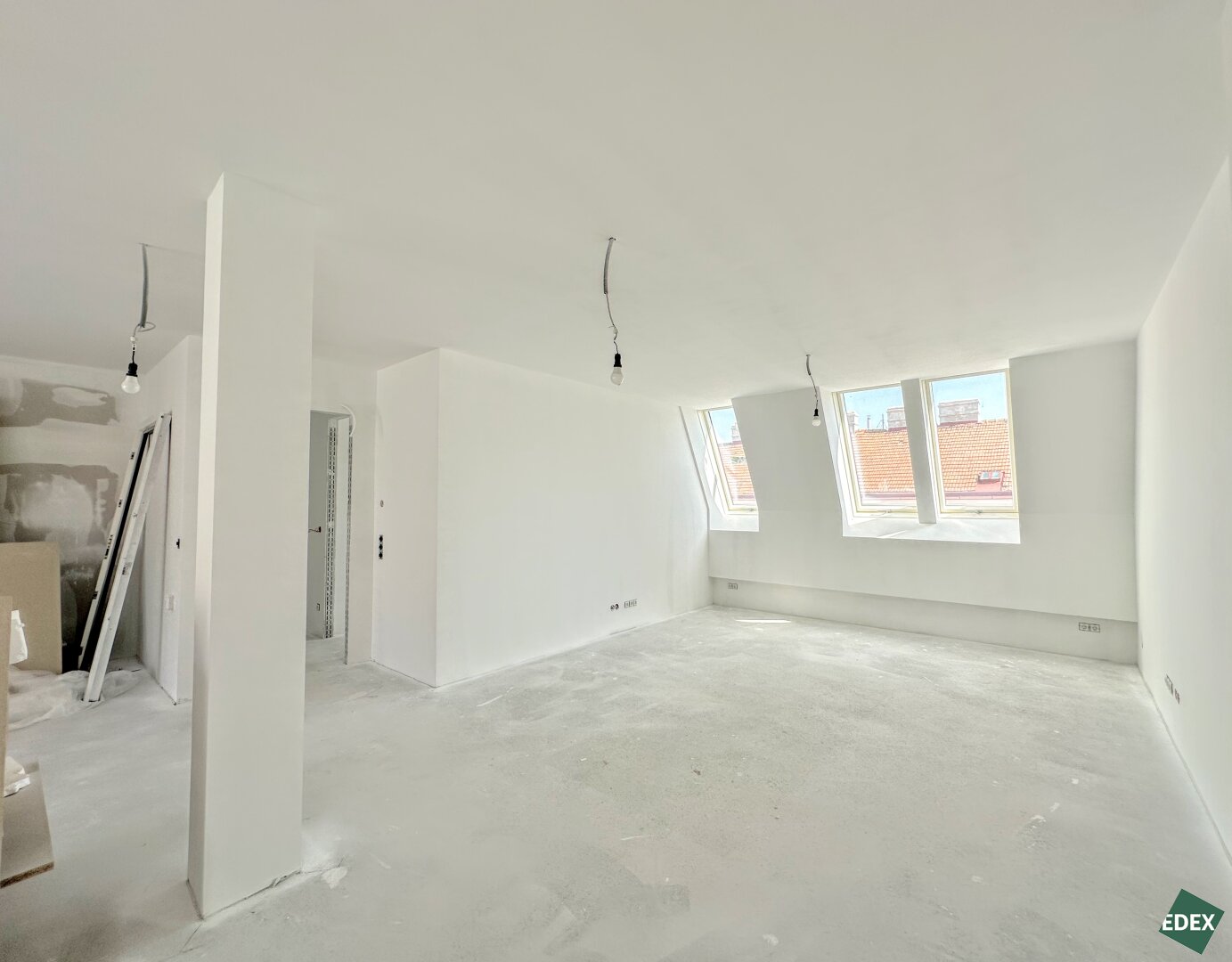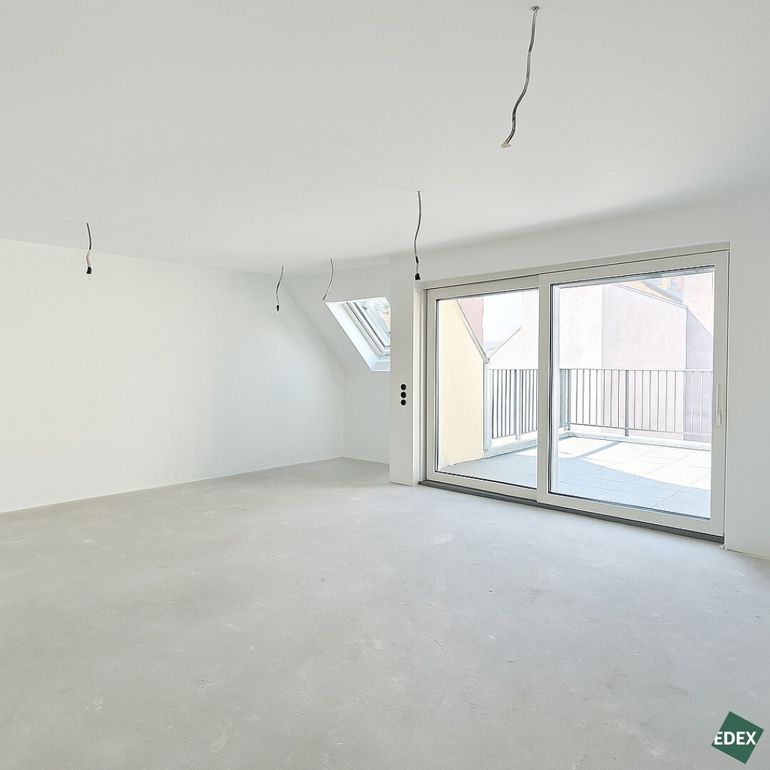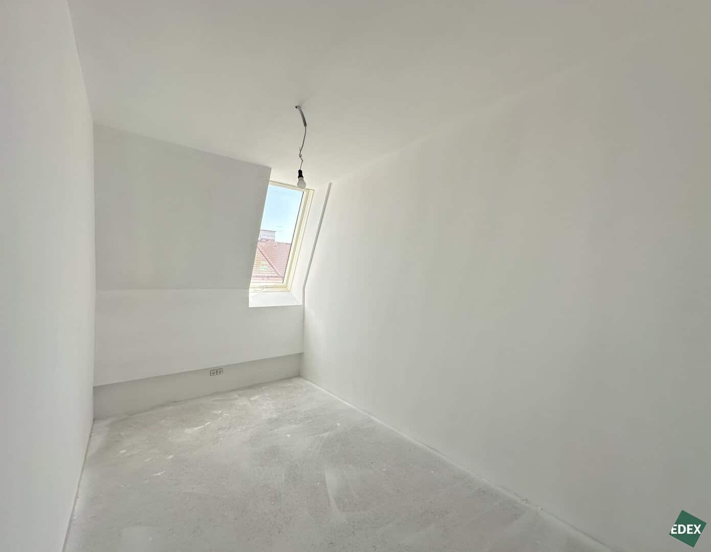 Die ca. 124 m² große 4-Zimmer-Wohnung befindet sich im neu ausgebauten Dachgeschoß. Die Wohnung verfügt über einen Vorraum, eine separate Toilette mit Handwaschbecken, ein modernes Badezimmer mit Doppelwaschbecken, Badewanne, Dusche und Toilette, einen Abstellraum mit Waschmaschinenanschluss, eine großzügige Wohnküche mit Anschlüssen für eine offene Küche sowie über drei Schlafzimmer. Zudem verfügt die Wohnung über zwei Balkone.