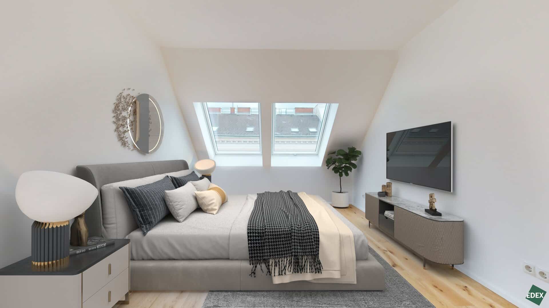 Die in diesem Exposé enthaltenen Bilder dienen der Veranschaulichung und können teilweise computergenerierte Visualisierungen (Renderings) beinhalten. Diese Darstellungen sollen einen Eindruck von der möglichen Gestaltung der Immobilie vermitteln, stellen jedoch keine verbindliche Beschaffenheitsangabe dar. Die abgebildeten Möbel und Einrichtungsgegenstände dienen ausschließlich der Illustration und sind nicht Bestandteil des Kauf- oder Mietgegenstandes.