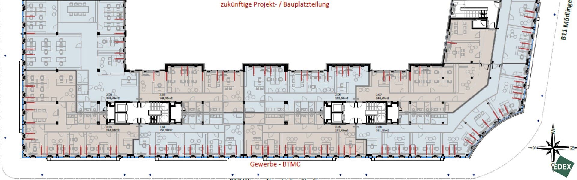 In diesem Bürohaus stehen ab Q3-2022 hochmoderne Einheiten (Erstbezug) von 142,95 m² bis 5.840,10 m² zur Verfügung. Die Flächen können in unterschiedlichen Kombinationen angemietet werden. Gegenüber der Badner Bahn Station „Wiener Neudorf“ und somit perfekt angebunden, entsteht aktuell ein hochwertiger Neubau. Das Objekt das durch höchste Flexibilität sowie seine ruhige und unaufdringliche Eleganz besticht, umfasst vier Obergeschosse mit insgesamt ca. 5.840,10 m² Büroflächen. Die Fertigstellung erfolgt im Q3-2022.