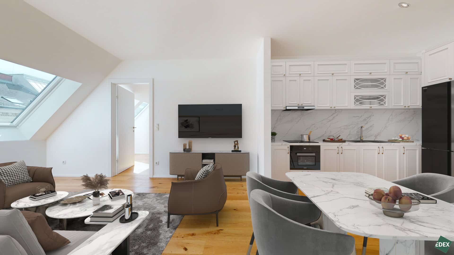 Die in diesem Exposé enthaltenen Bilder dienen der Veranschaulichung und können teilweise computergenerierte Visualisierungen (Renderings) beinhalten. Diese Darstellungen sollen einen Eindruck von der möglichen Gestaltung der Immobilie vermitteln, stellen jedoch keine verbindliche Beschaffenheitsangabe dar. Die abgebildeten Möbel und Einrichtungsgegenstände dienen ausschließlich der Illustration und sind nicht Bestandteil des Kauf- oder Mietgegenstandes.