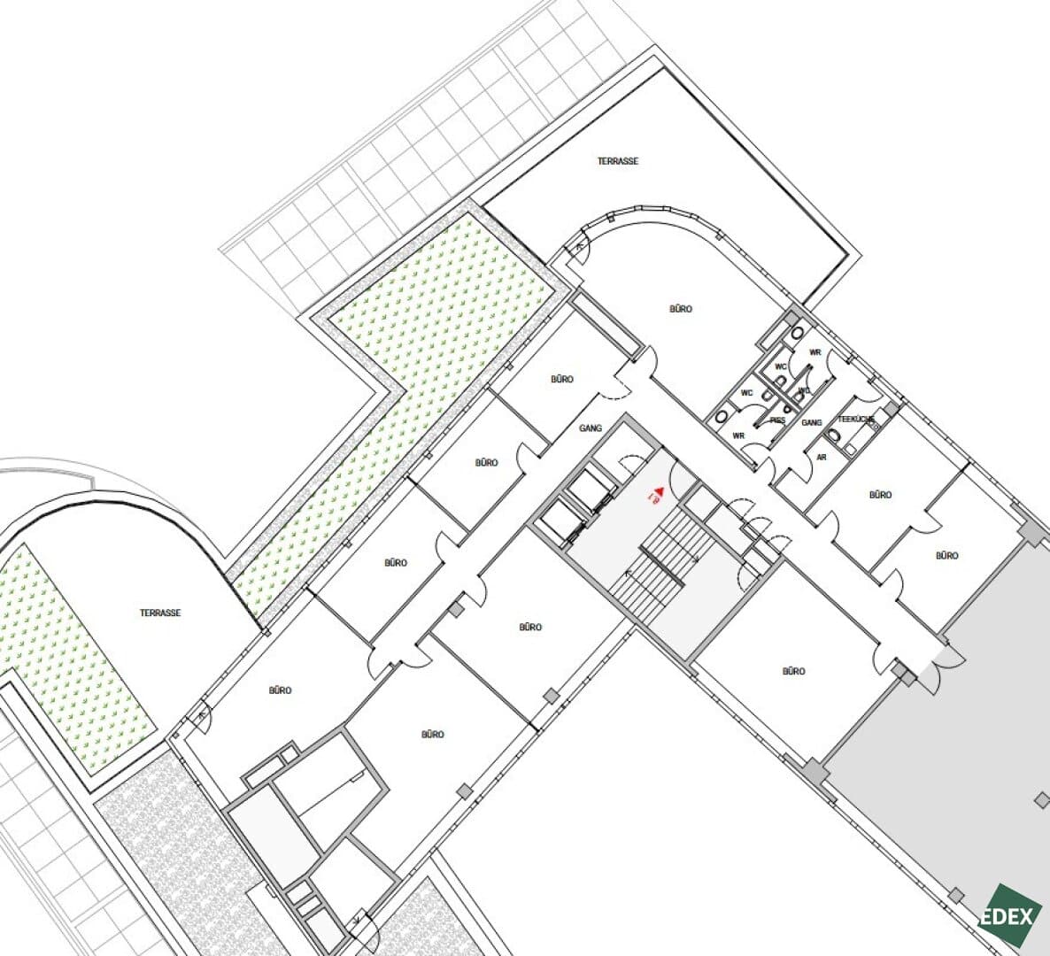 Die gegenständliche Fläche besteht aktuell aus zehn unterschiedlich großen Büroräumen, getrennten Toiletten, einer Teeküche sowie einem Abstellraum. Besonderes Highlight ist die ca. 125 m² große Terrasse.