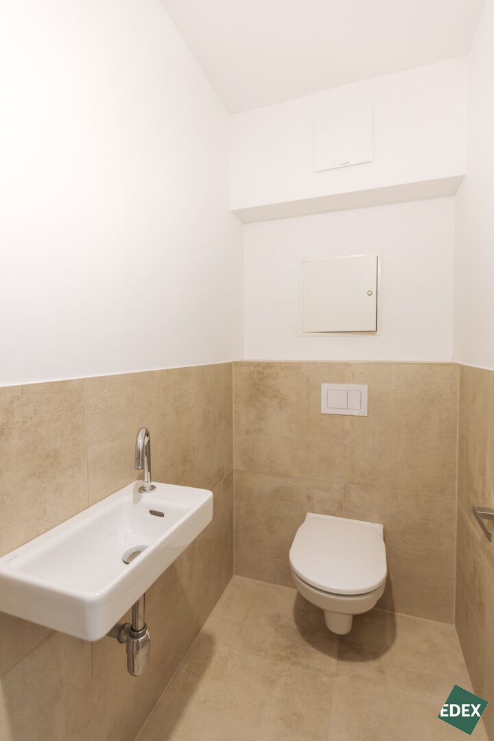 Die Wohnräume präsentieren sich mit hochwertigem Parkett, während das Badezimmer mit zeitlosem, elegantem Feinsteinzeug ausgestattet ist. Die Beheizung erfolgt durch eine effiziente Zentralheizung in Verbindung mit Fußbodenheizung, und dreifach verglaste Fenster sorgen für optimale Isolierung. Ein zusätzliches Kellerabteil steht für praktischen Stauraum zur Verfügung, und im Haus befindet sich ein Abstellraum für Kinderwagen und Fahrräder.