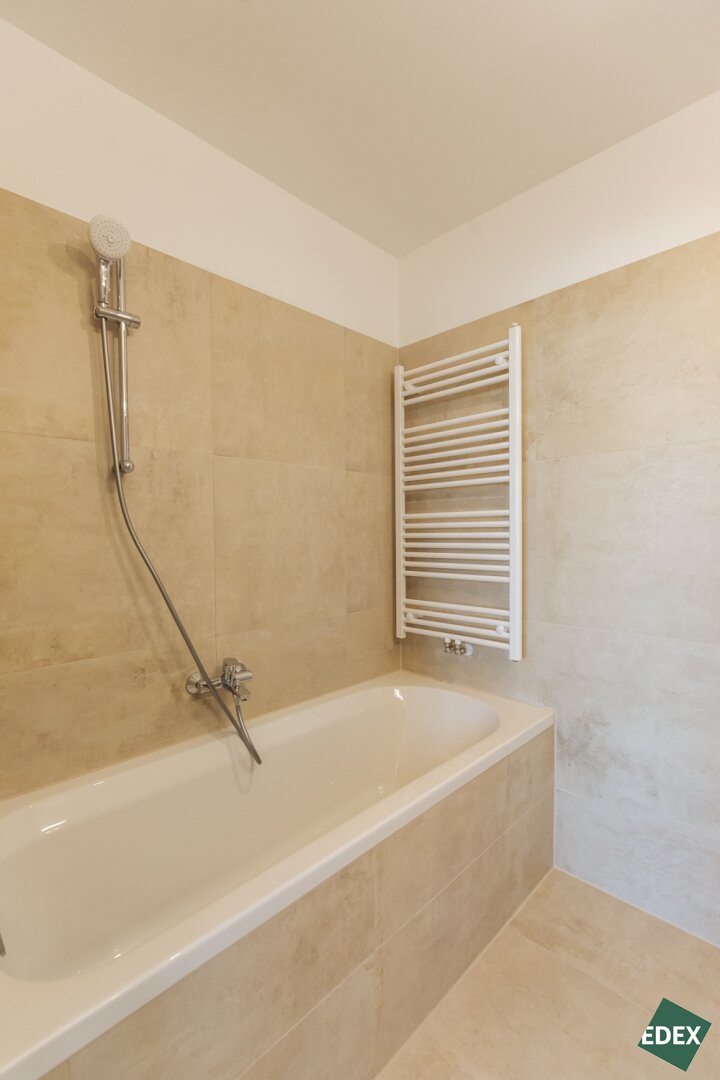 Die Wohnräume präsentieren sich mit hochwertigem Parkett, während das Badezimmer mit zeitlosem, elegantem Feinsteinzeug ausgestattet ist. Die Beheizung erfolgt durch eine effiziente Zentralheizung in Verbindung mit Fußbodenheizung, und dreifach verglaste Fenster sorgen für optimale Isolierung. Ein zusätzliches Kellerabteil steht für praktischen Stauraum zur Verfügung, und im Haus befindet sich ein Abstellraum für Kinderwagen und Fahrräder.