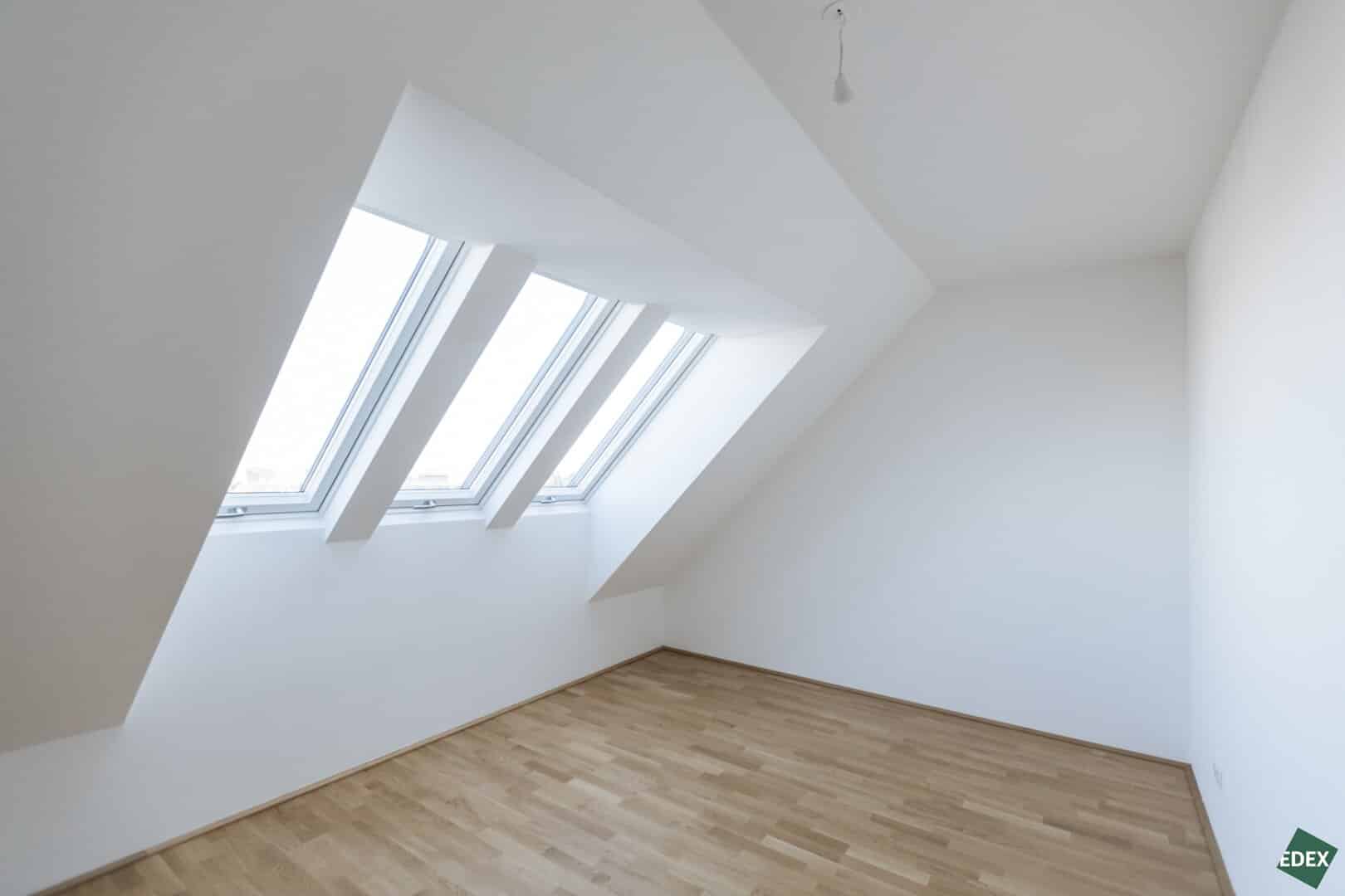 Diese atemberaubende Dachmaisonette-Wohnung mit drei Schlafzimmern erstreckt sich über zwei Ebenen im ersten und zweiten Dachgeschoss und bietet großzügige ca. 121,80 m² beeindruckender Wohnfläche. Die durchdachte Raumaufteilung beginnt im zentralen Vorraum, der Sie zu einer ca. 21,22 m² großen, voll ausgestatteten Wohnküche mit einer angrenzenden ca. 11,57 m² großen Terrasse führt – der perfekte Ort für kulinarische Genüsse im Freien. Auf dieser Ebene finden Sie außerdem ein Schlafzimmer mit angrenzendem Schrankraum, ein modernes Bad mit Badewanne und Waschmaschinenanschluss sowie ein separates WC mit Handwaschbecken.