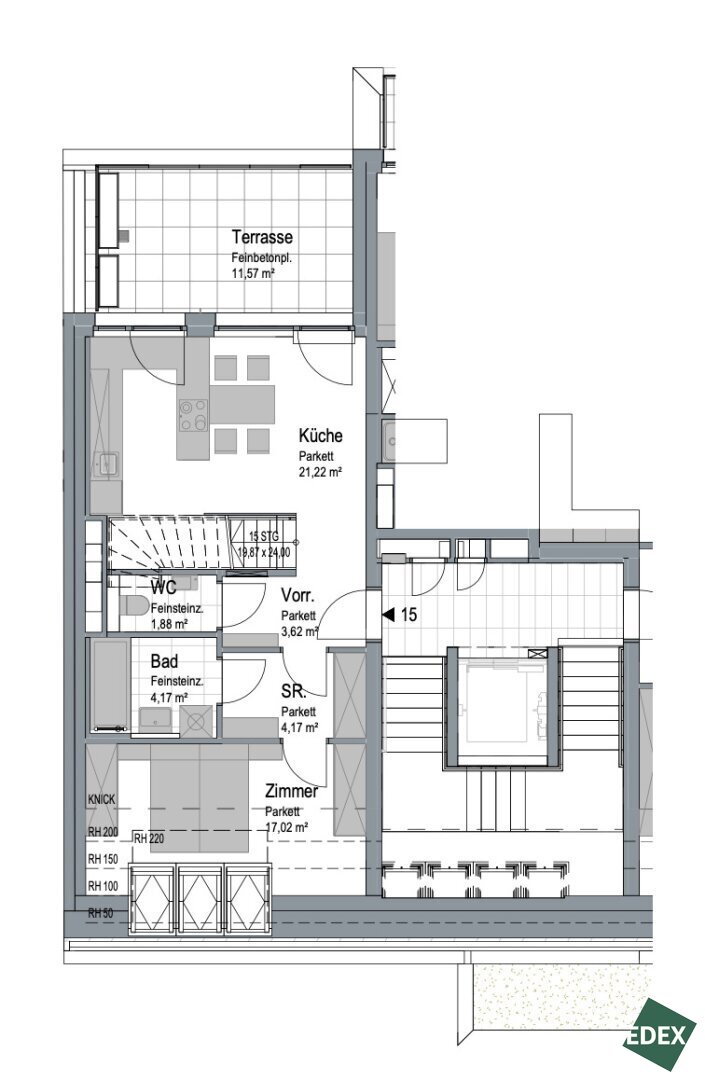 - TOP 13: ca. 63,68 m² 2-Zimmer-Wohnung mit 7,42 m² Loggia
