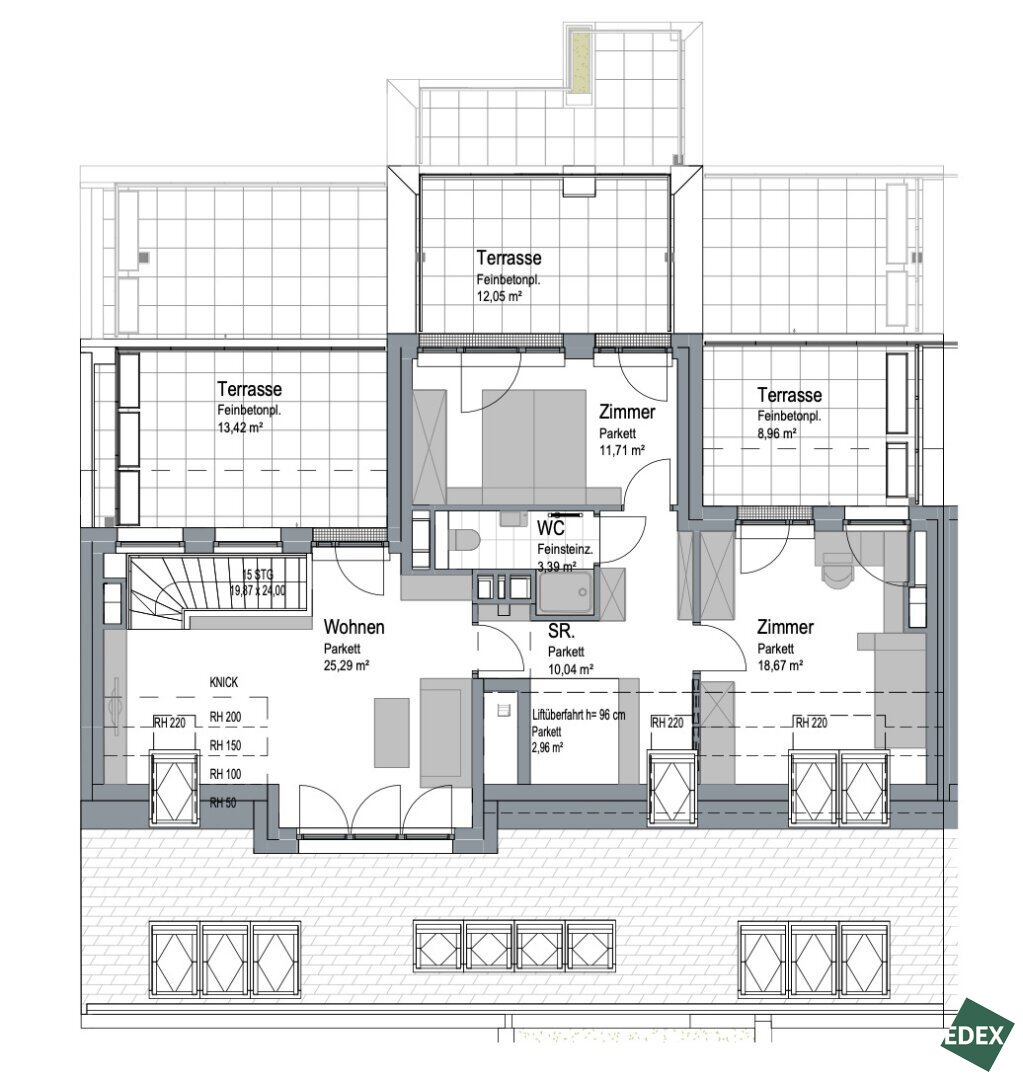 - Top 15: ca. 121,18 m² 4-Zimmer-Maisonette-Wohnung mit 45 m² Terrasse