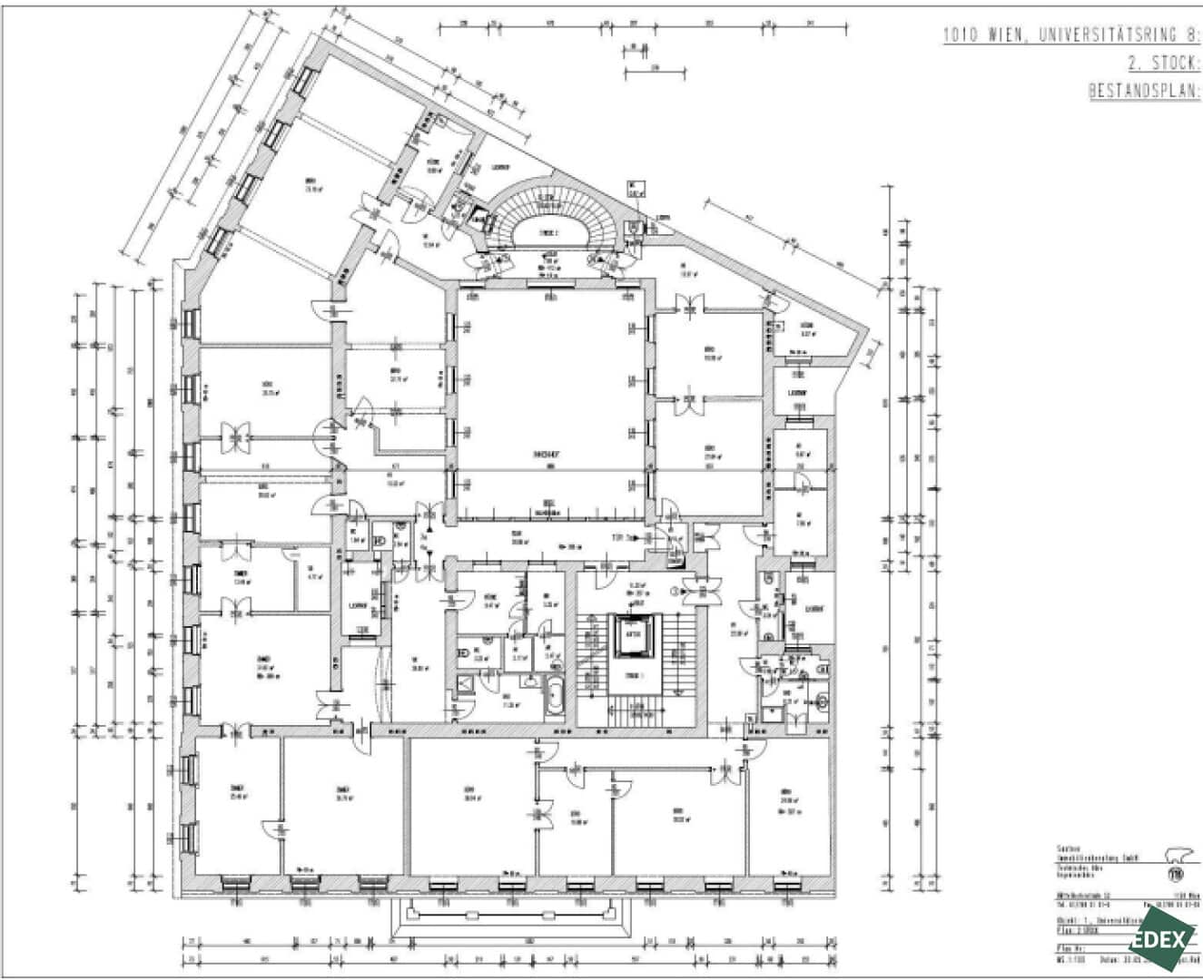 Im Mezzanin bietet eine ca. 650 m² große, hochwertig ausgestattete Fläche beeindruckende Raumhöhen, viel Tageslicht sowie einen Balkon mit Blick auf den Rathauspark und die Universität. Teeküchen, IT-Verkabelung und moderner Ausbau – READY TO MOVE IN.