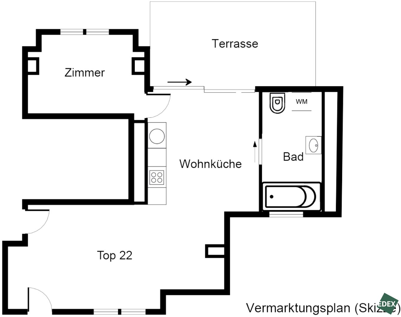 - Top 14 ca. 32,57 m² große 1-Zimmer-Wohnung: EUR 235.000,-
