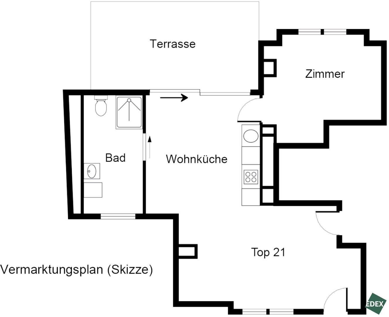 - Top 21 ca. 58,67 m² große 2-Zimmer-Wohnung mit ca. 15,84 m² Terrasse: EUR 469.900,-