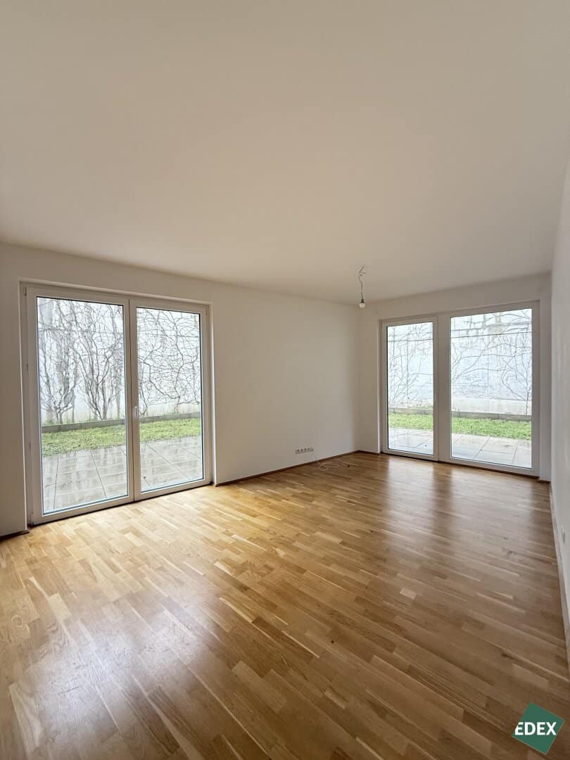 Zur Vermietung gelangt eine schöne 2-Zimmer-Gartenwohnung in ruhiger Wohnlage. Die lichtdurchflutete Wohnung befindet sich im 1.Stock und verfügt über einen Vorraum, einen Abstellräum mit Waschmaschinenanschluss, ein separates WC, ein modernes Badezimmer, eine großzügige Wohnküche inkl. Geräten sowie zwei Schlafzimmer. Über das Wohnzimmer hat man Zugang zu einem ca. 40 m² großen Garten. Die Fenster sind mit Raffstores/außenliegenden Sonnenschutz ausgestattet. Die Wohnräume sind mit Parkettböden und die Nassräume sind mit eleganten Fliesen ausgestattet. Im Haus befinden sich Kinderwagen- und Fahrradabstellräume sowie eine Tiefgarage in der Stellplätze angemietet werden können. Die Wohnungen stehen ab Dezember zur Verfügung und werden auf 5 Jahre befristet vermietet.