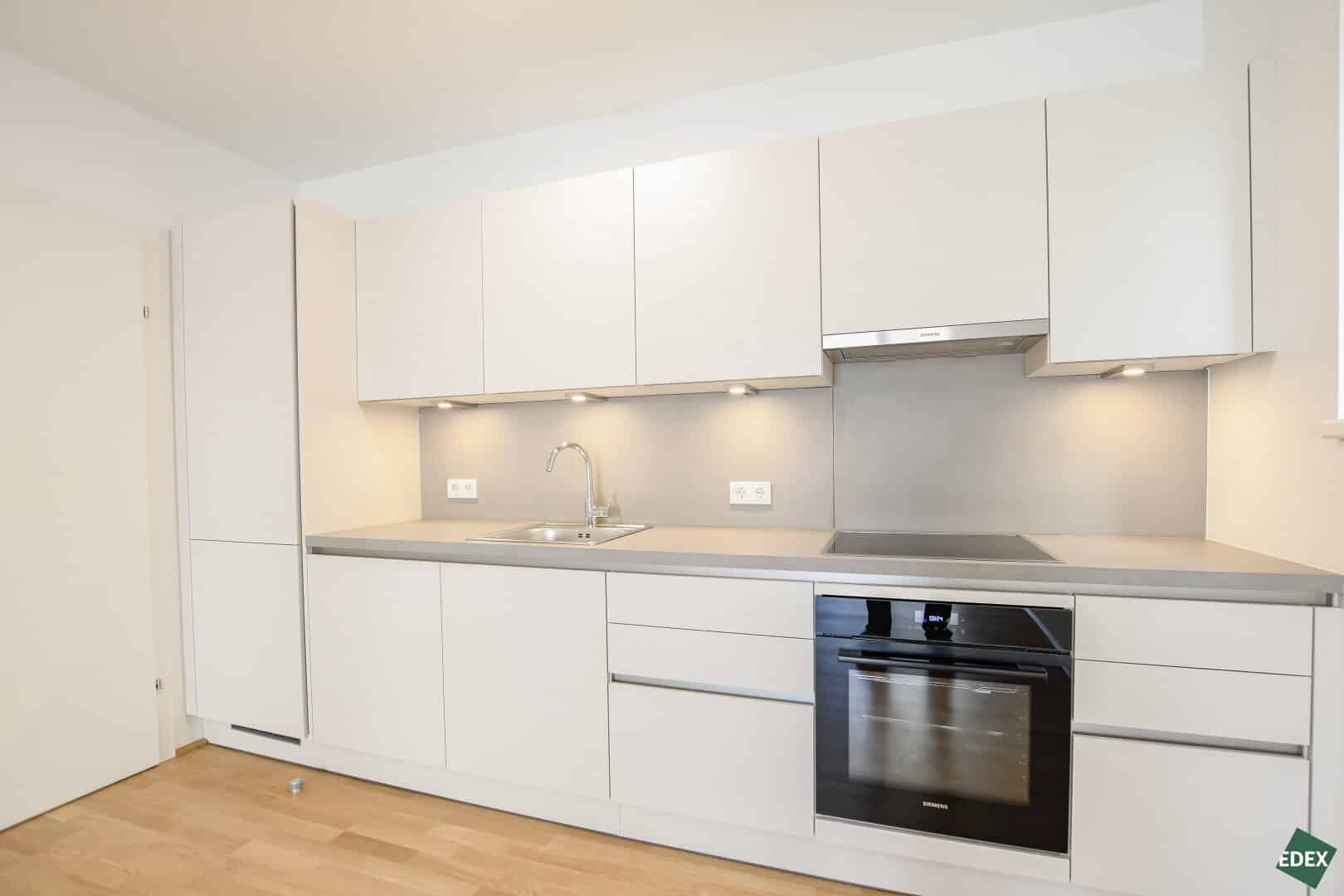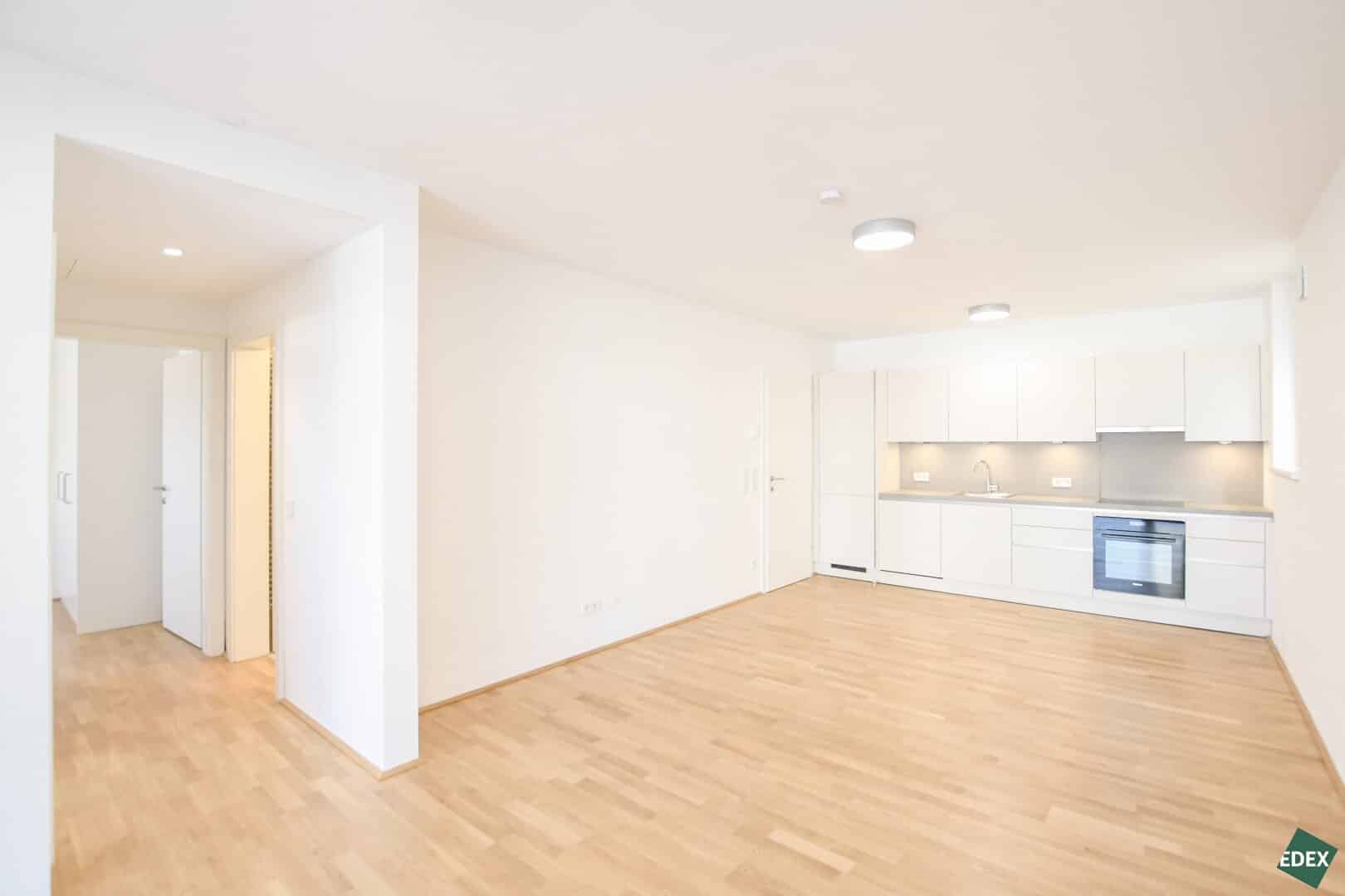 Die Wohnungen mit einer Größe von ca. 48 m² bis 137 m² verfügen über ein bis drei Zimmer und bieten großzügige Grundrisse mit durchdachter Raumaufteilung. Beinahe jede Einheit verfügt über eine Freifläche in Form von Balkon, Terrasse oder Garten – für mehr Licht, Luft und Lebensqualität. Die intelligente Raumnutzung vermittelt selbst bei kleineren Flächen Großzügigkeit. Der zentrale Wohnbereich mit offener Küche (ausgestattet mit modernen SIEMENS-Geräten) schafft einen harmonischen Mittelpunkt für entspanntes Wohnen.
