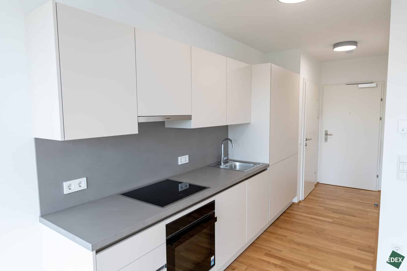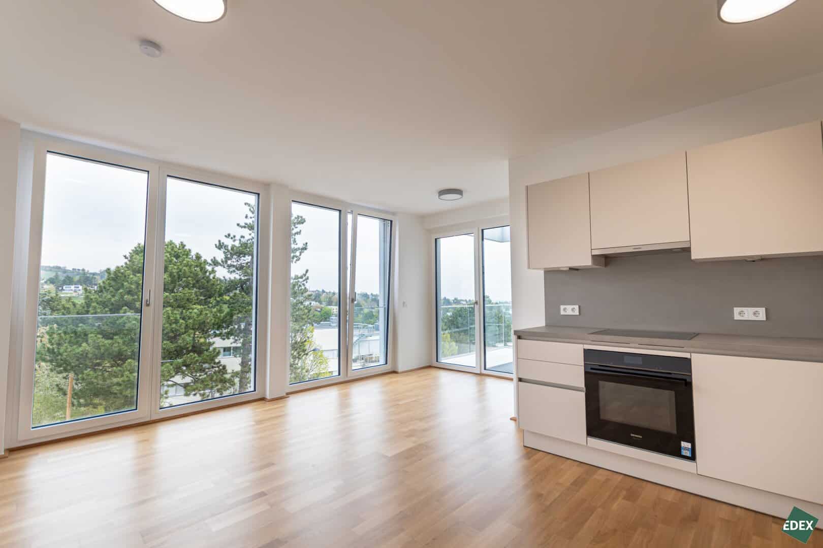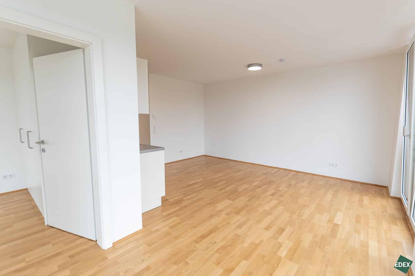 Die Wohnungen mit einer Größe von ca. 48 m² bis 137 m² verfügen über ein bis drei Zimmer und bieten großzügige Grundrisse mit durchdachter Raumaufteilung. Beinahe jede Einheit verfügt über eine Freifläche in Form von Balkon, Terrasse oder Garten – für mehr Licht, Luft und Lebensqualität. Die intelligente Raumnutzung vermittelt selbst bei kleineren Flächen Großzügigkeit. Der zentrale Wohnbereich mit offener Küche (ausgestattet mit modernen SIEMENS-Geräten) schafft einen harmonischen Mittelpunkt für entspanntes Wohnen.