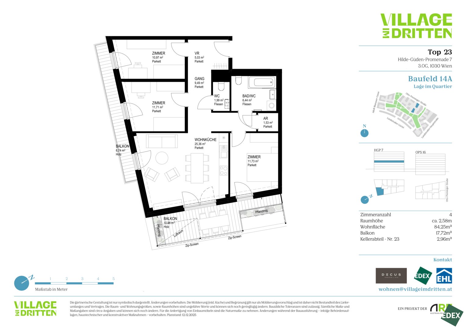 VILLAGE IM DRITTEN | BAUFELD 14A | 4-ZIMMER WOHNUNG MIT 2 BALKONEN | ANLEGER